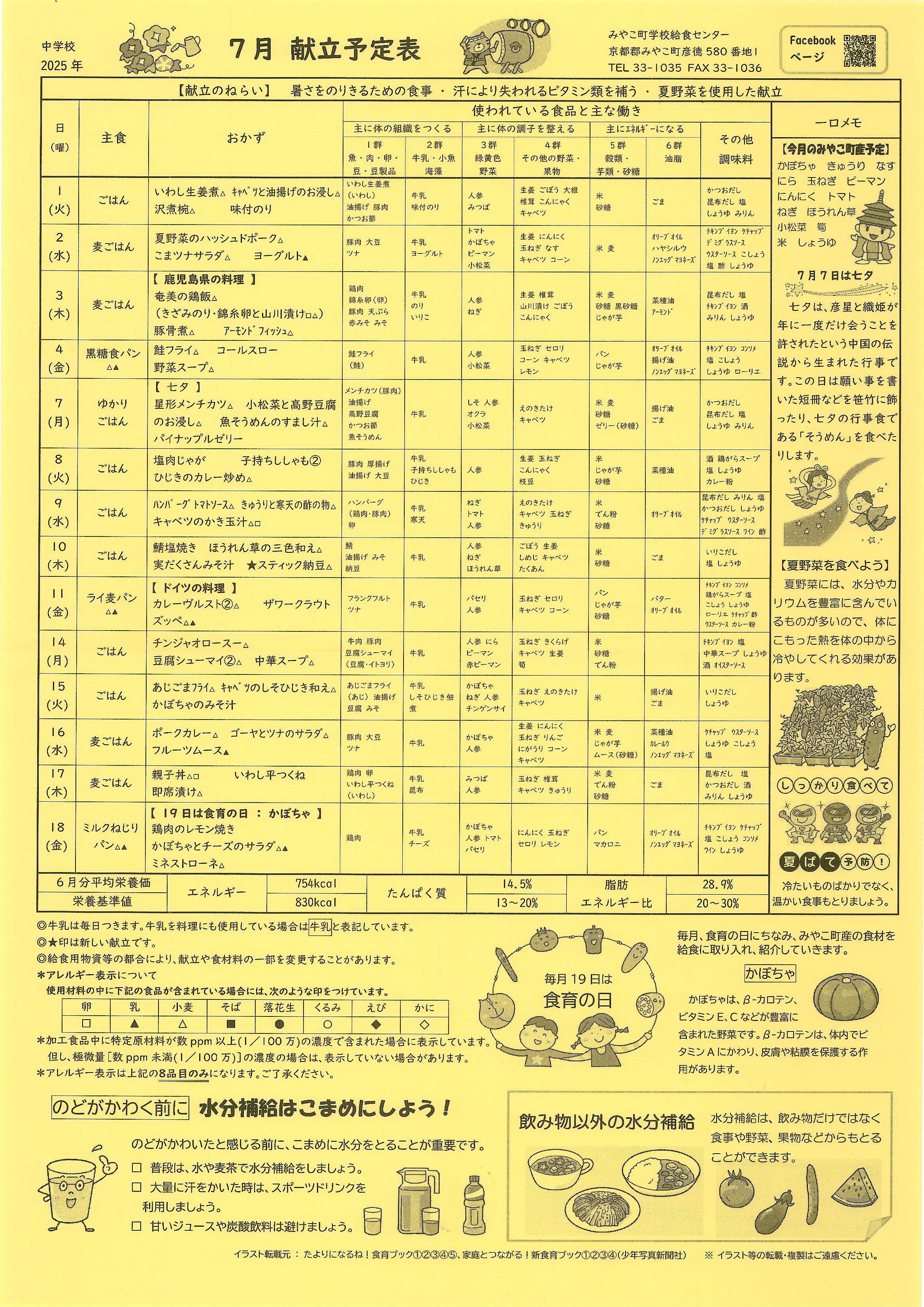 7月の献立表
